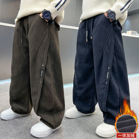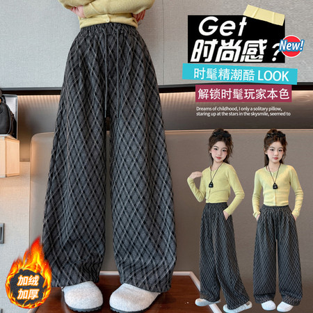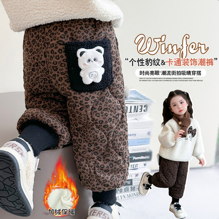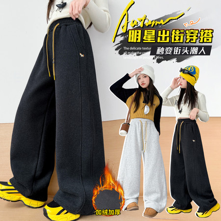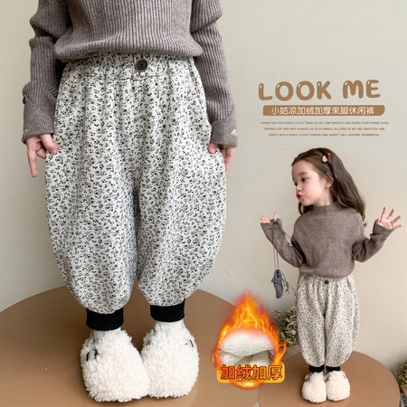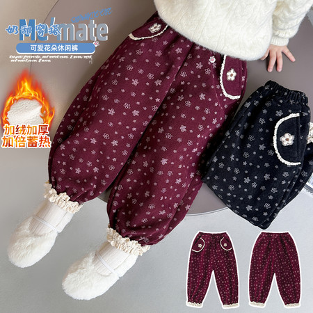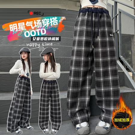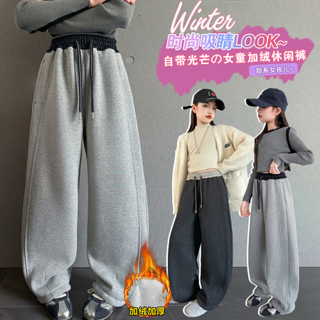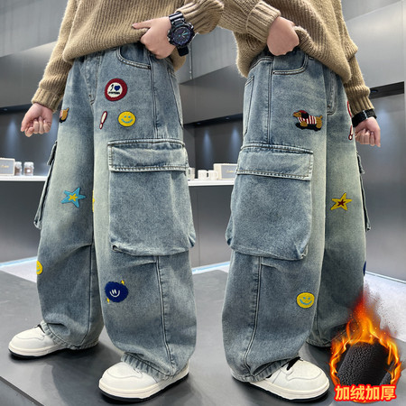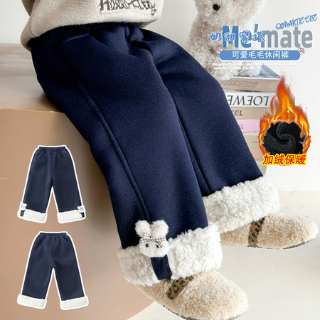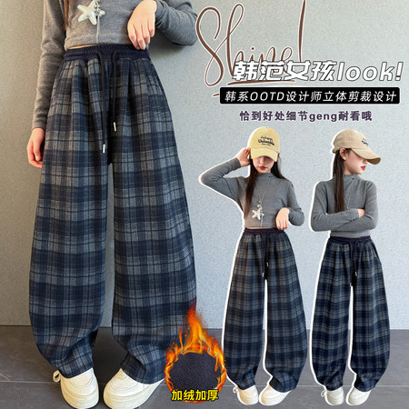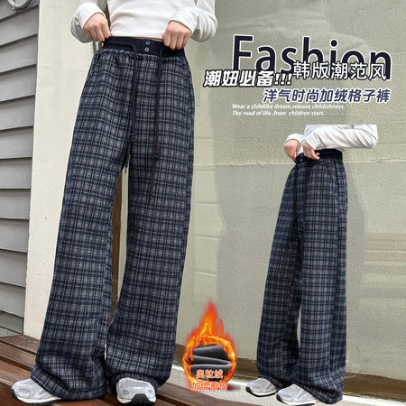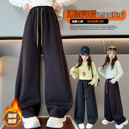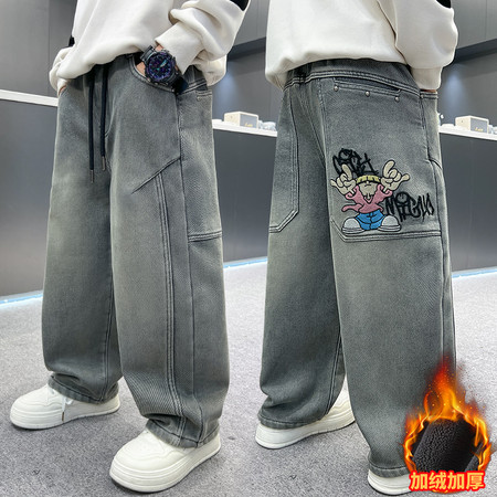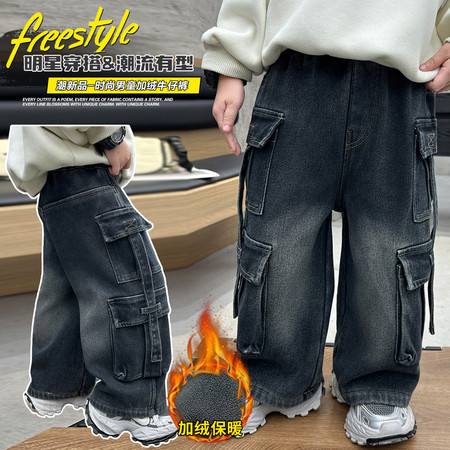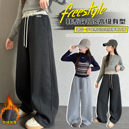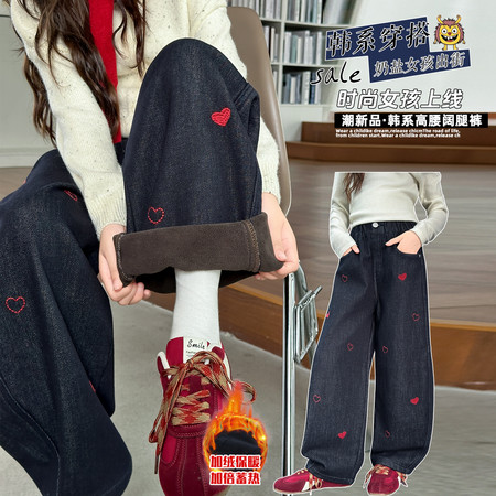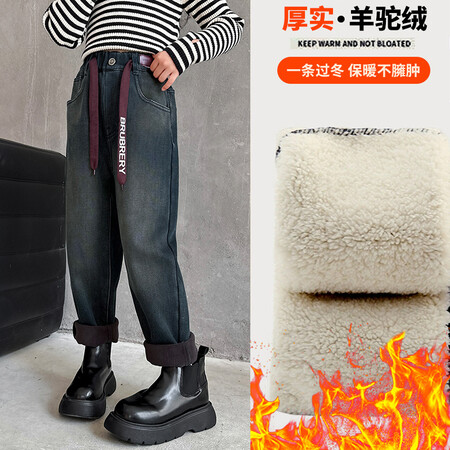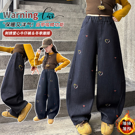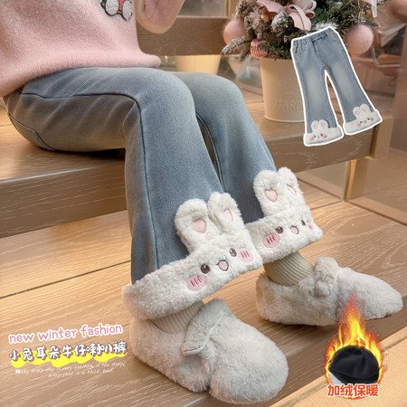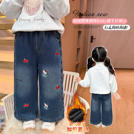 豪涵童装&女童冬款加绒拼接弯刀牛仔阔腿裤8871