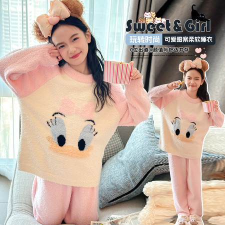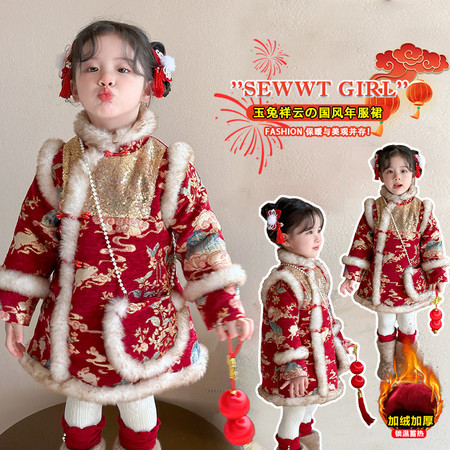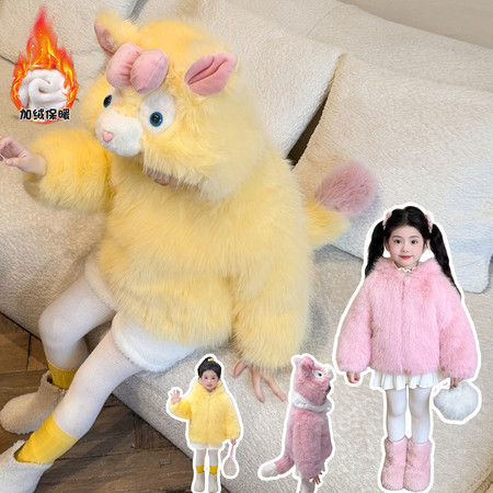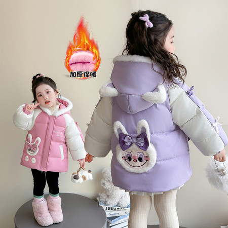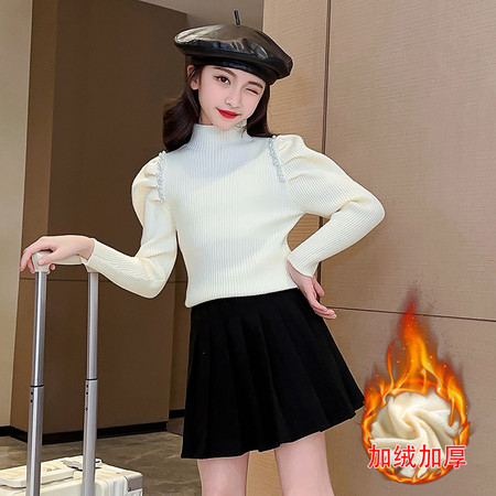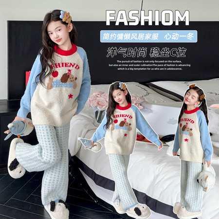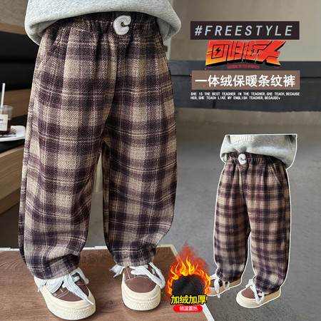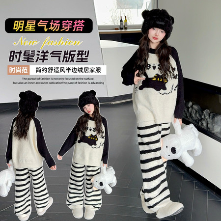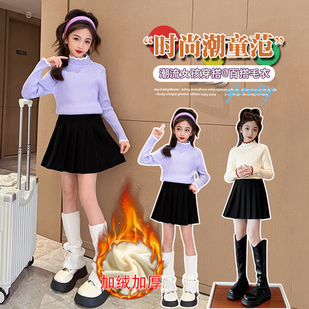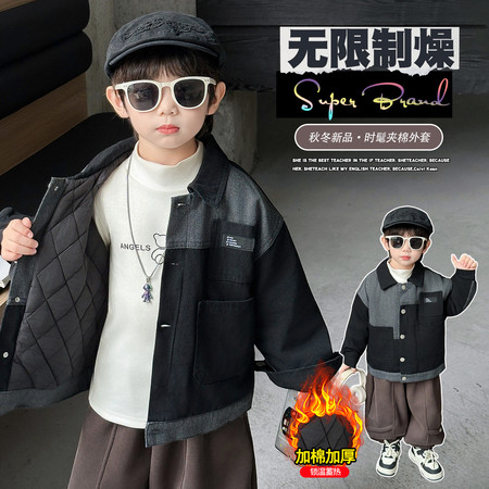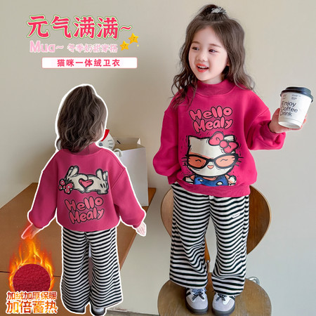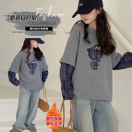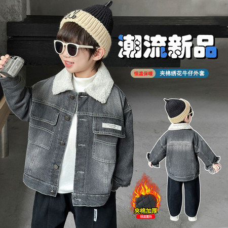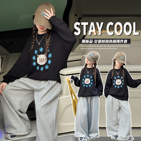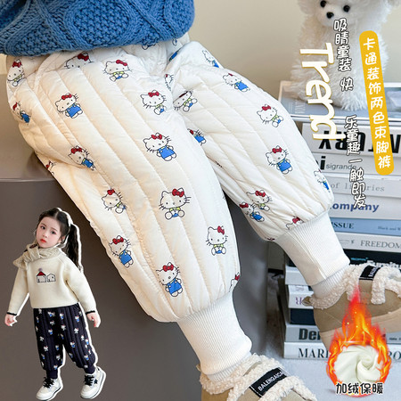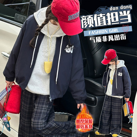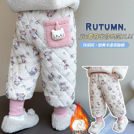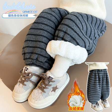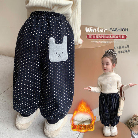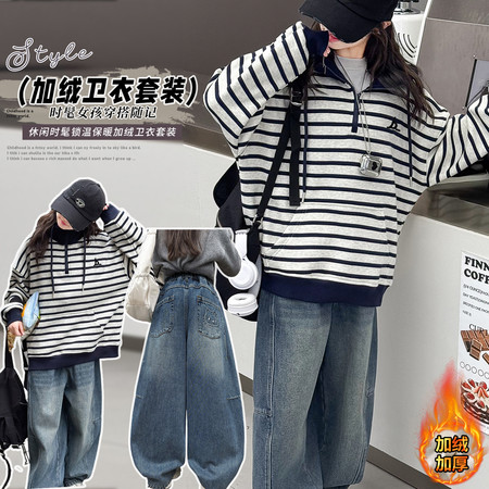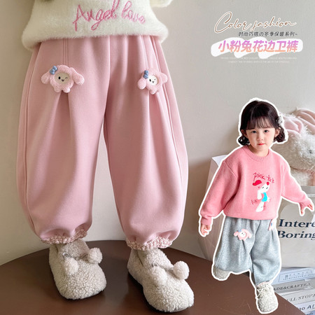豪涵童装&女童冬款加绒拼接弯刀牛仔阔腿裤8871