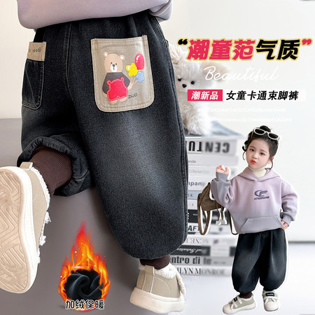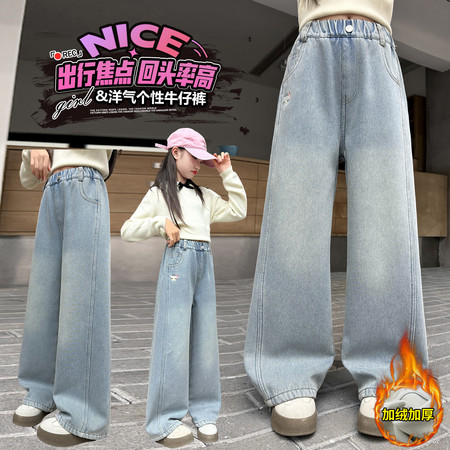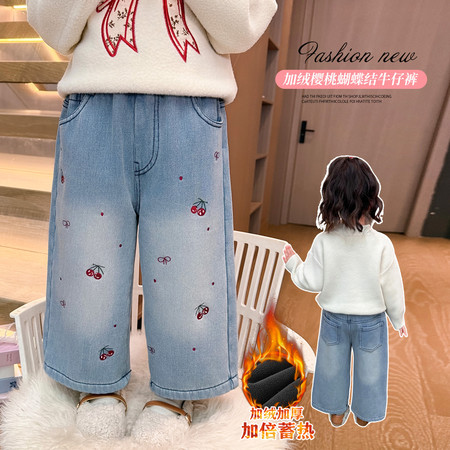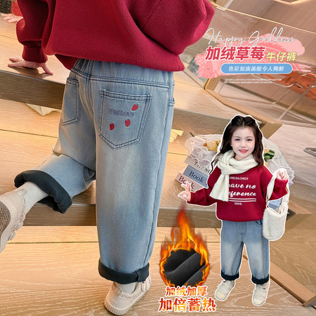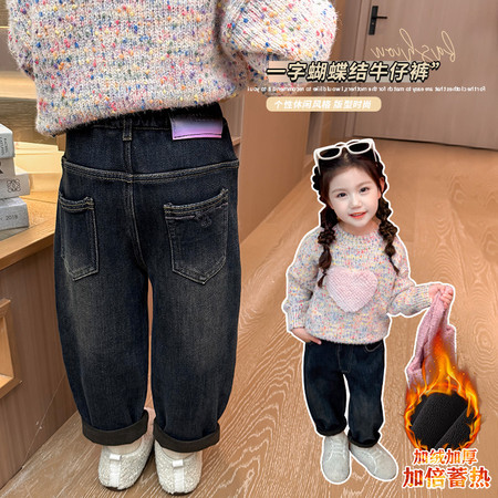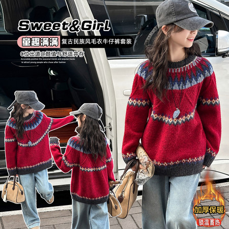 珊妮童装&8801女童毛衣三件套加绒牛仔裤