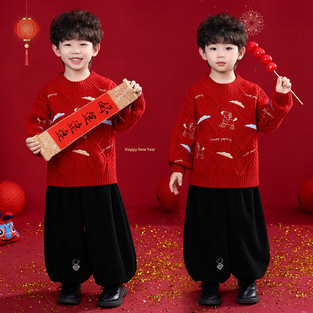 皮皮家&马宝拜年服两件套送包包