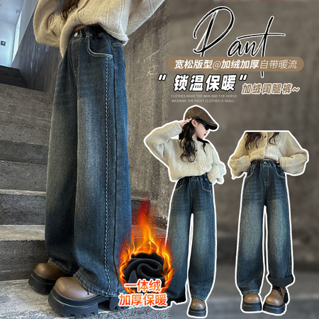 豪涵童装&女童冬款加绒加厚钉扣格子阔腿长裤2612
