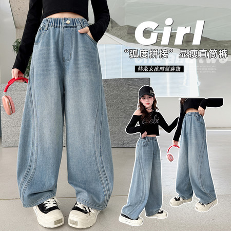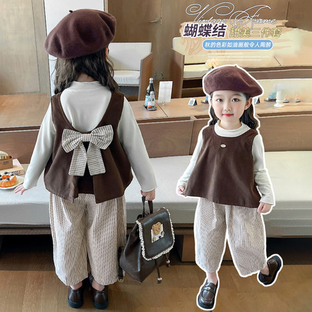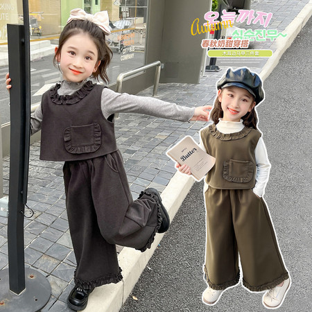 豪涵童装&冬款羊驼绒拼接定标条绒阔腿裤2640