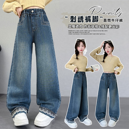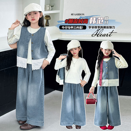 珊妮童装&2571-1格子衬衫毛衣背心牛仔裤套装