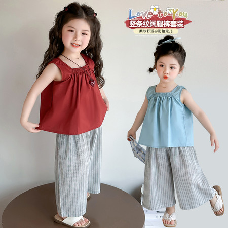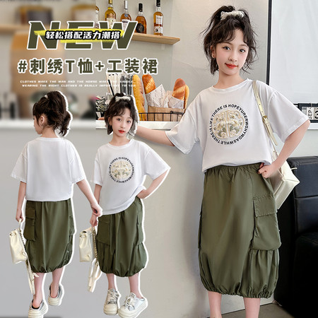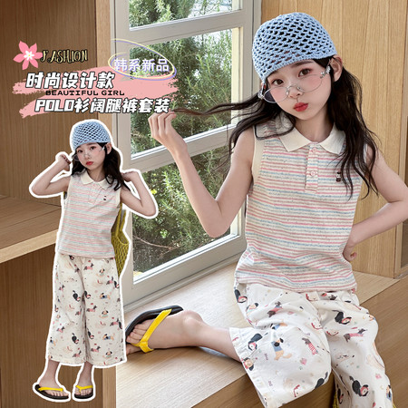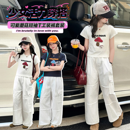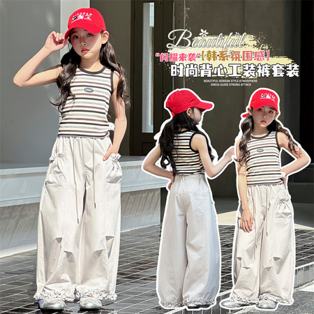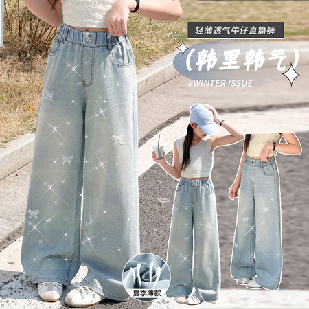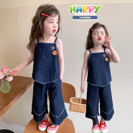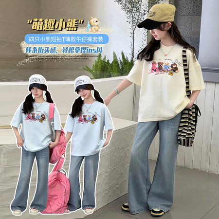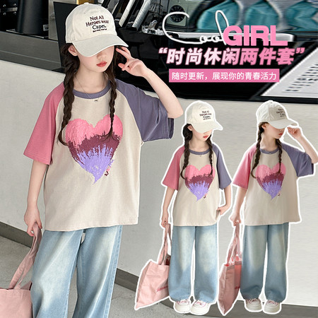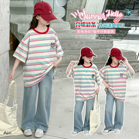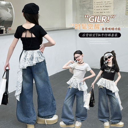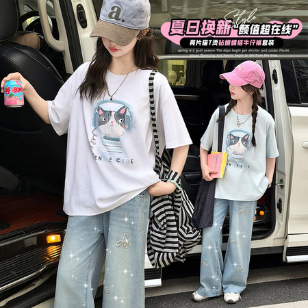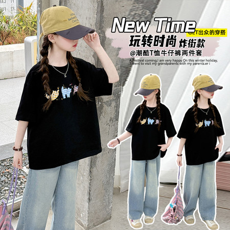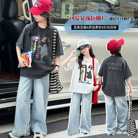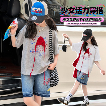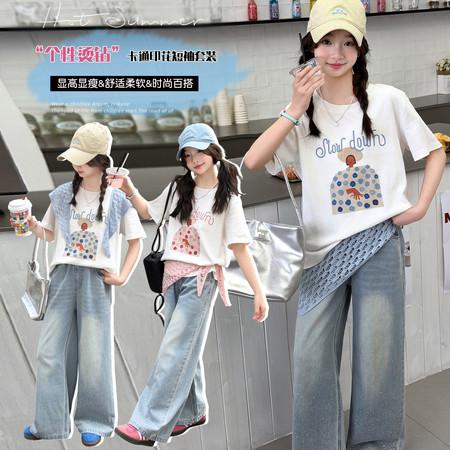 甜甜潮童&2611女孩披肩T烫钻牛仔裤套装