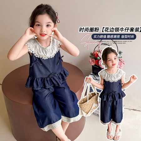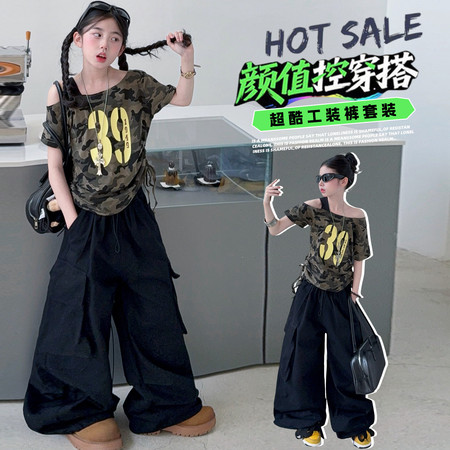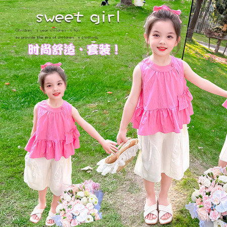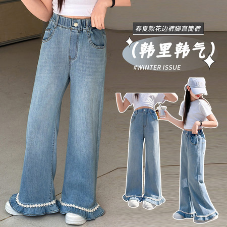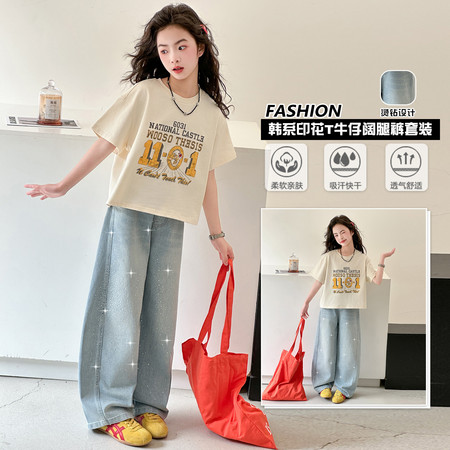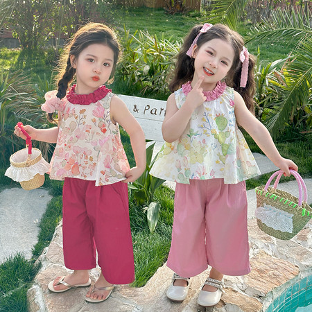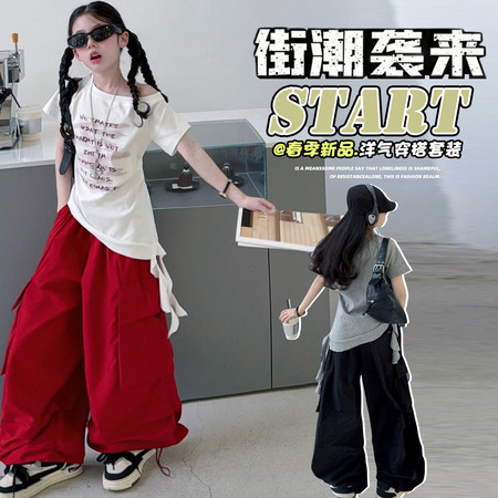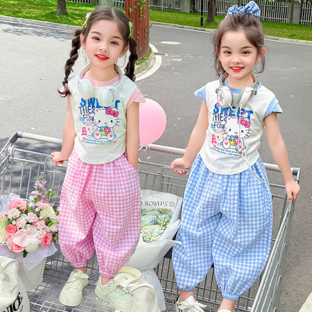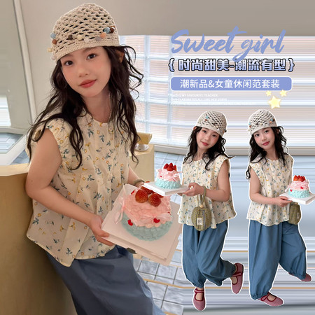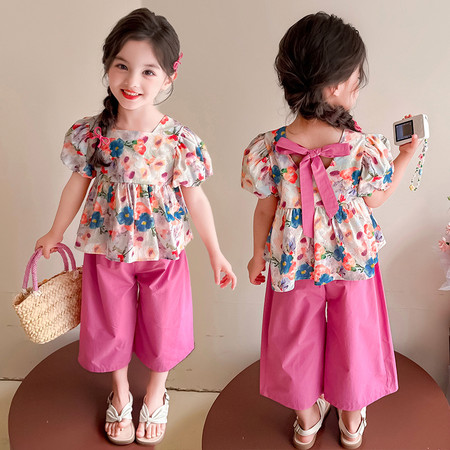 陶陶果童装&6572前面蝴蝶水钻薄款阔腿裤子