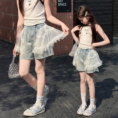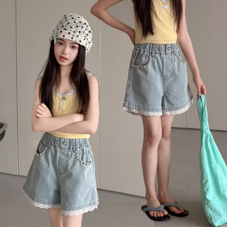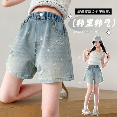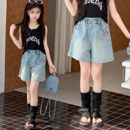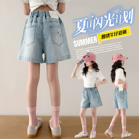 豪涵童装&夏款后袋绣花字母花朵牛仔短裤2721