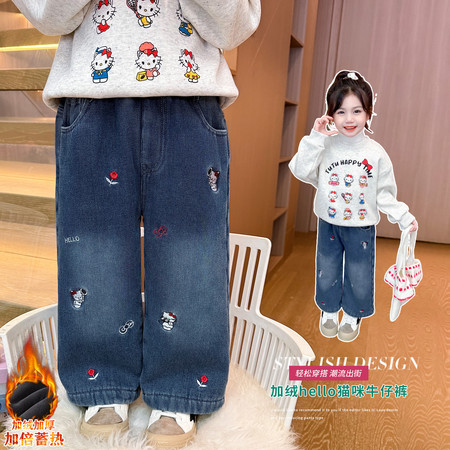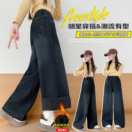 乐童&ua178后袋星星绣花阔腿裤冬款加绒