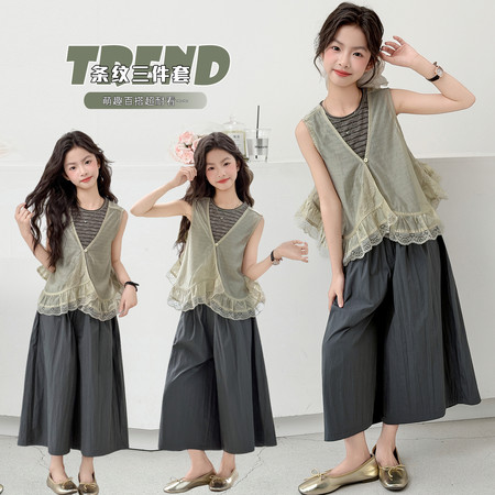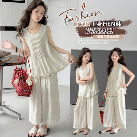漂亮优贝童装&2960款背心连衣裙蕾丝花边阔腿裤两件套