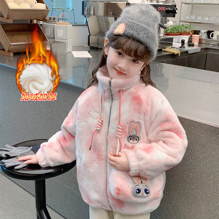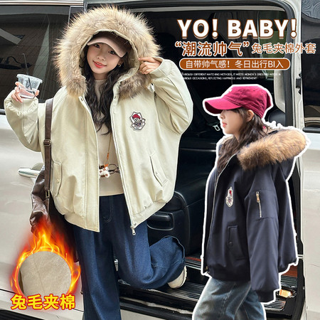 萌城杰达&卡通兔毛拼皮外套