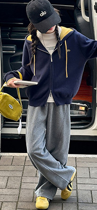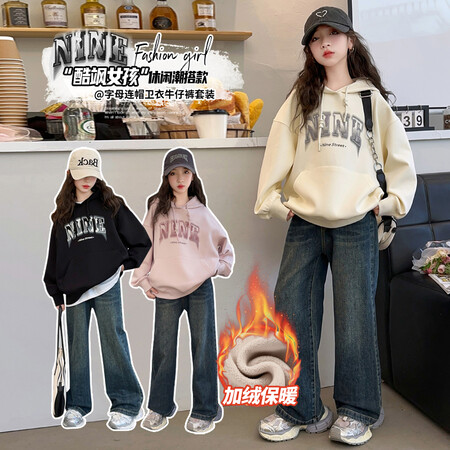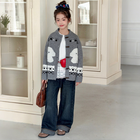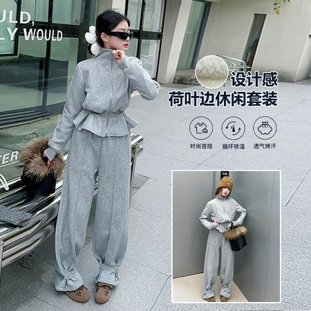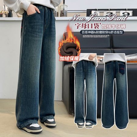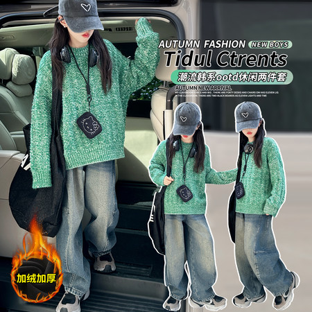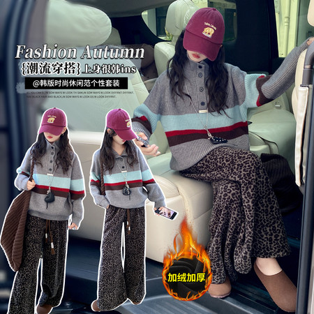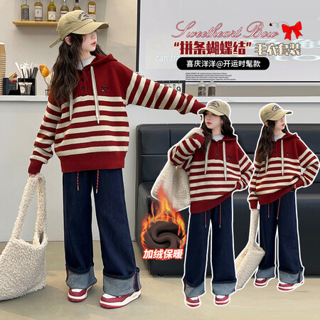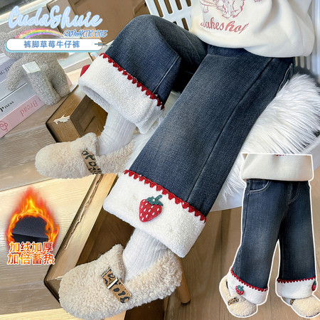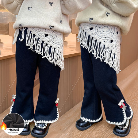 萌城杰达&蝴蝶结毛线加绒喇叭裤