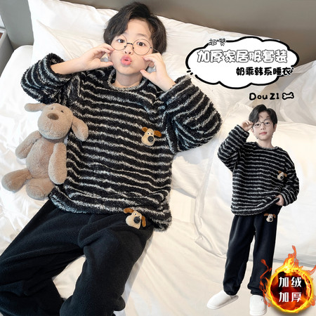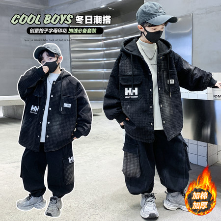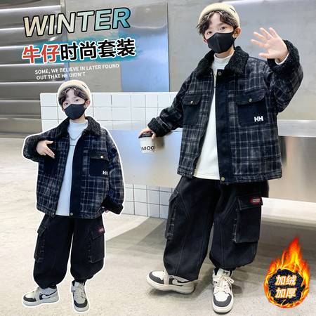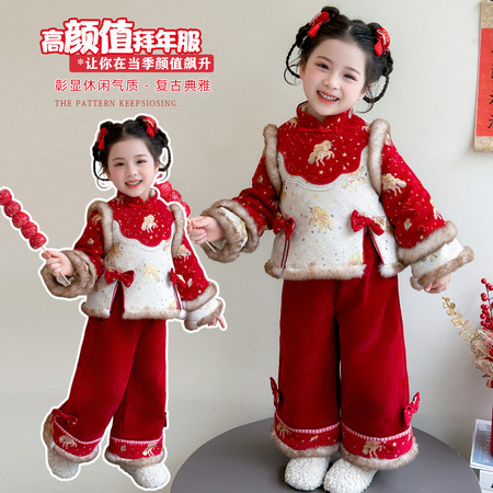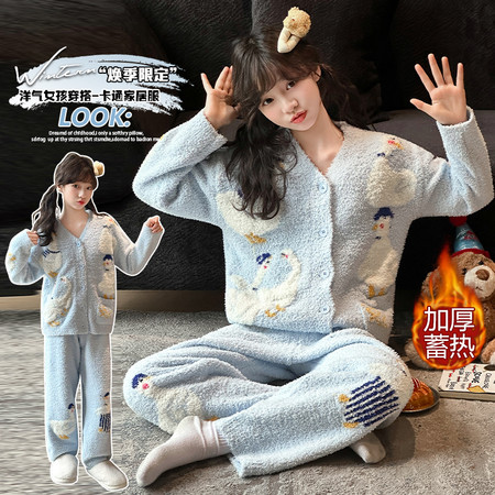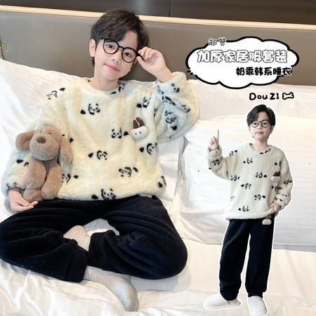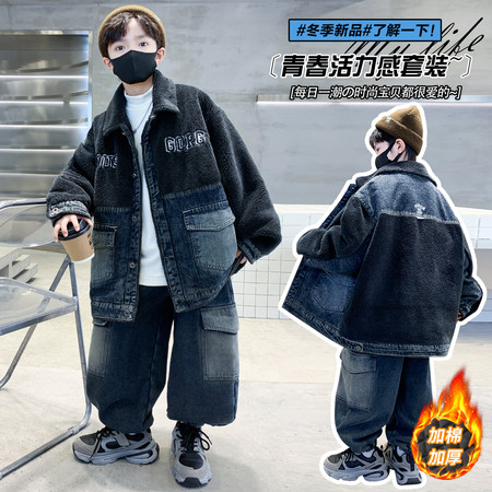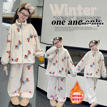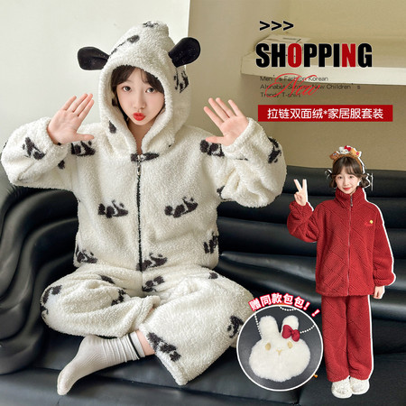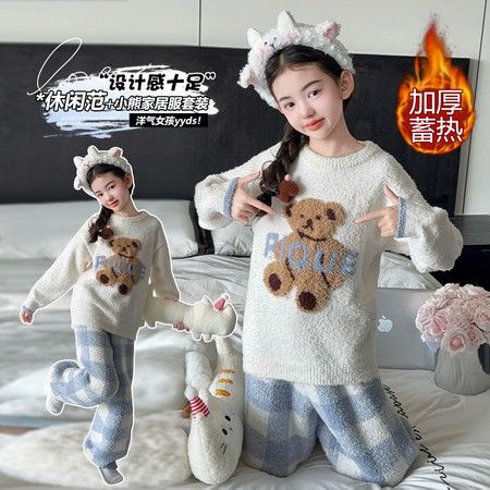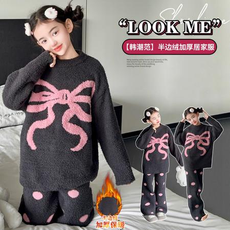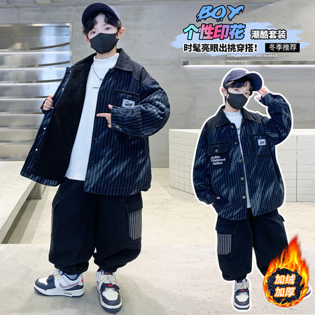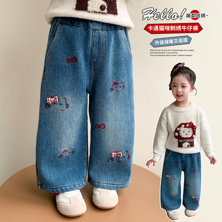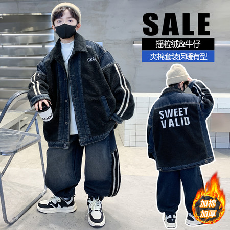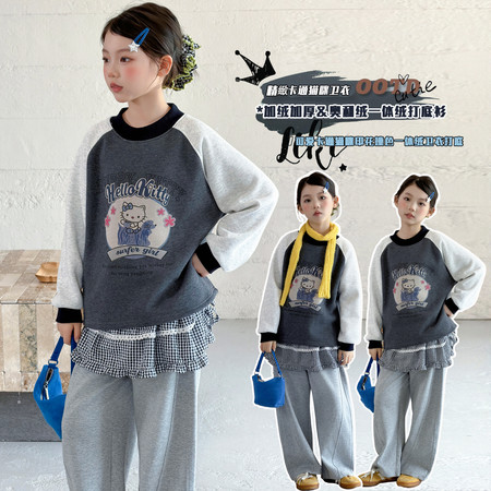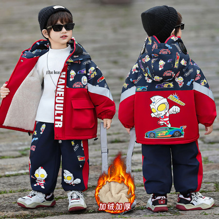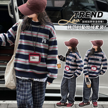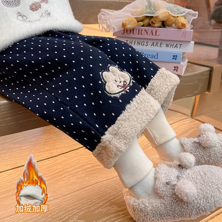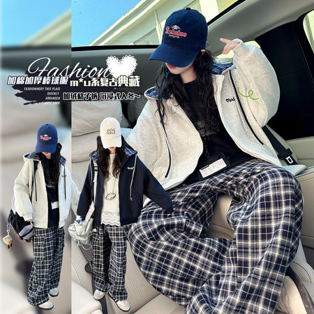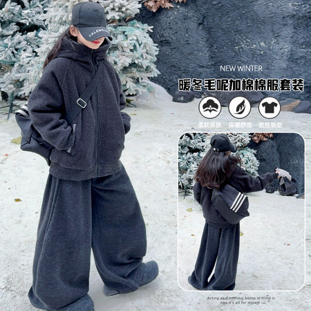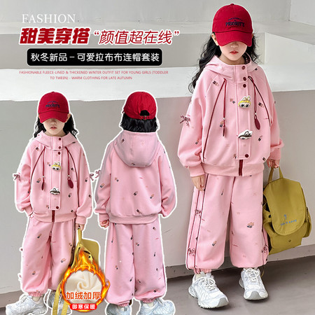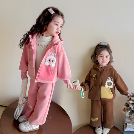 米咔精灵&2771笑脸刺绣加厚外套弯刀裤套装休闲