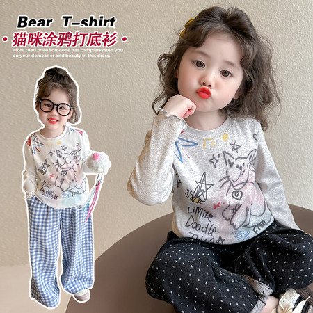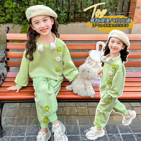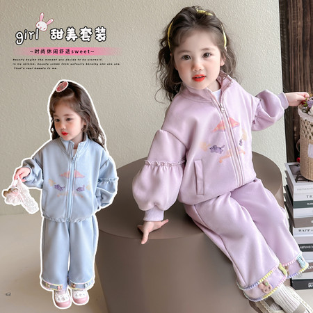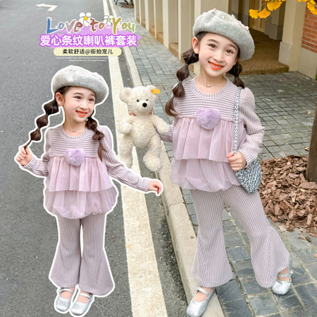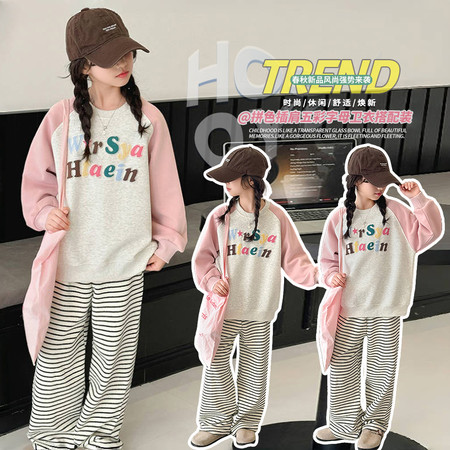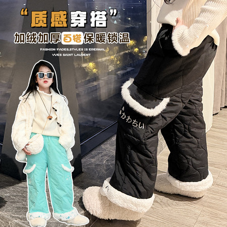陶陶果童装&6325后袋小字母浅色加绒阔腿裤
