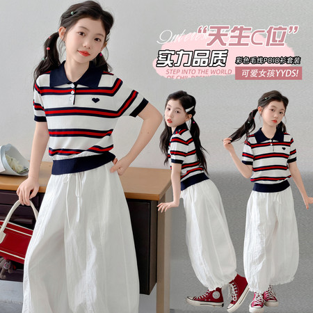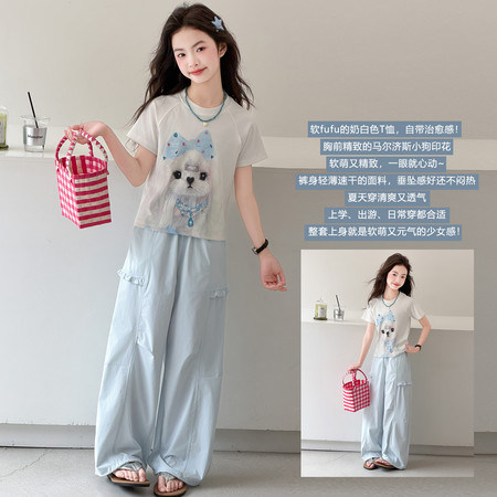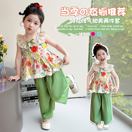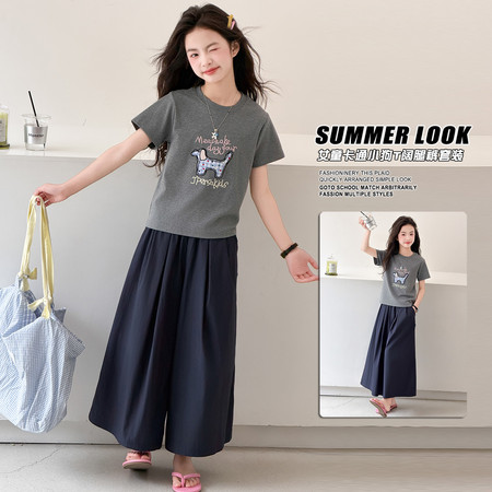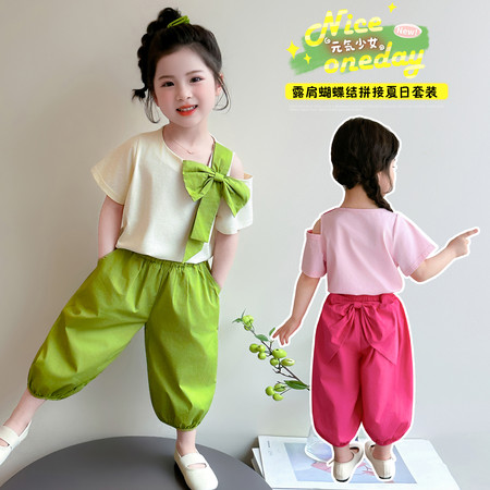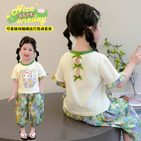 陶陶果童装&6572前面蝴蝶水钻薄款阔腿裤