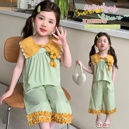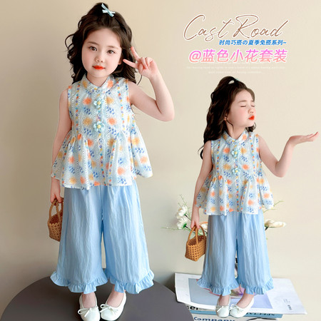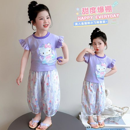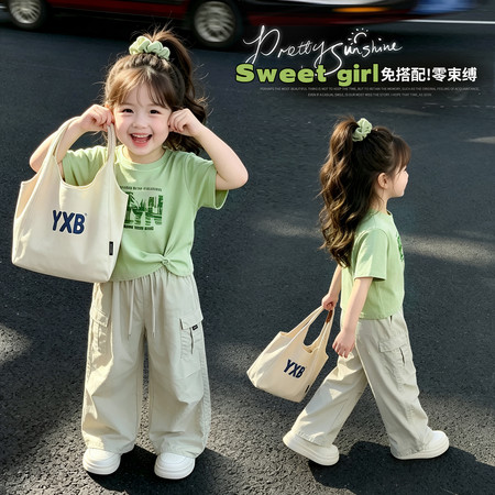 五小七&YH262256女童碎花蝴蝶挎包防晒三件