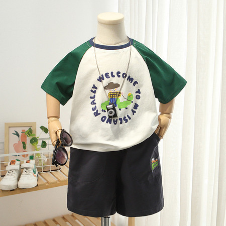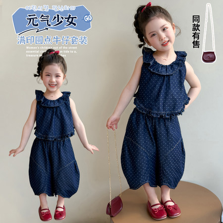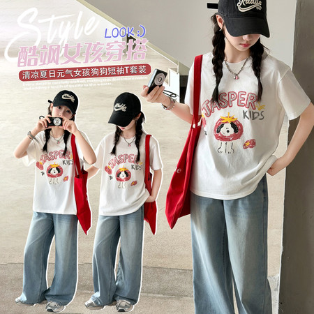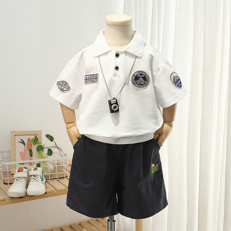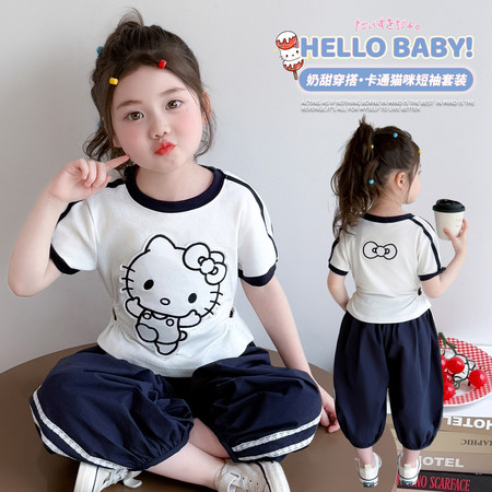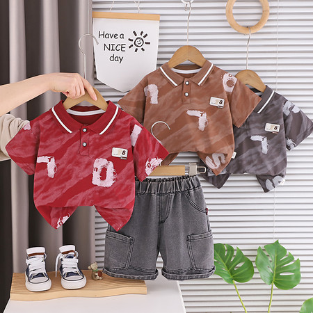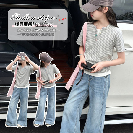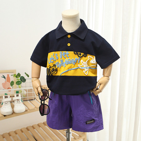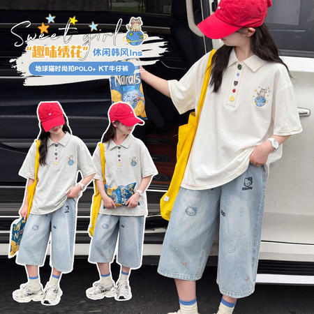 可可比熊&K62地球猫彩扣POLO牛仔中裤套装