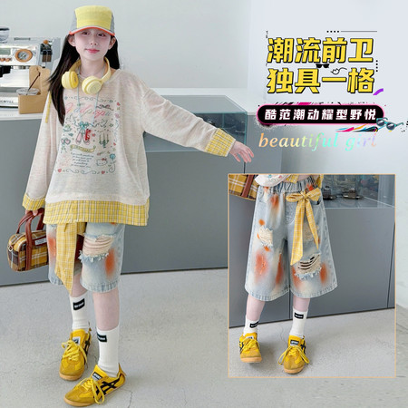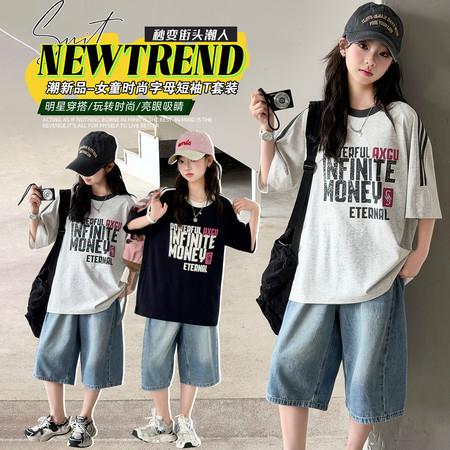 萌丫丫(原大手牵小手)&MYY26-短袖牛仔裤套装