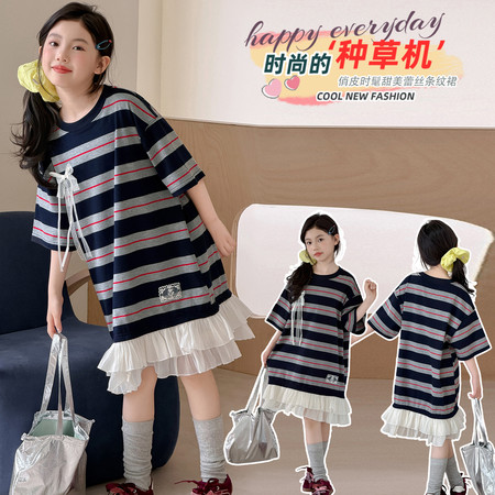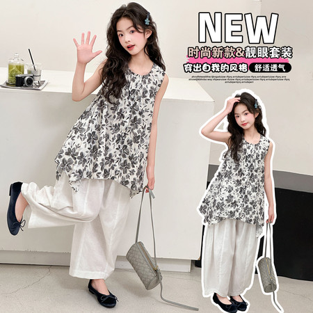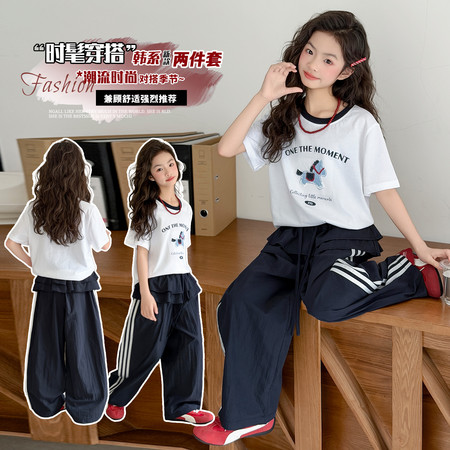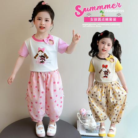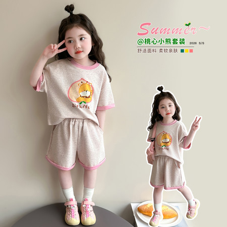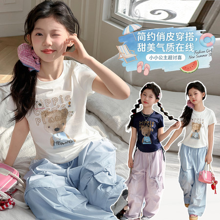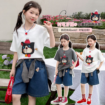 爆版熊&B816-女童宠物狗假两件拉条套装