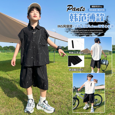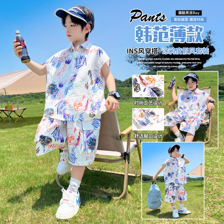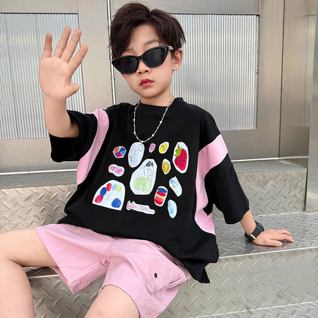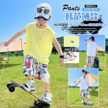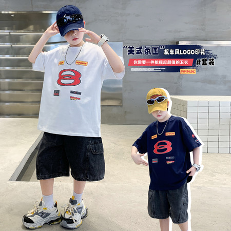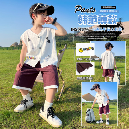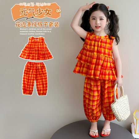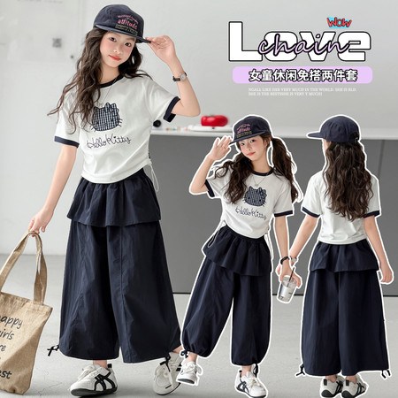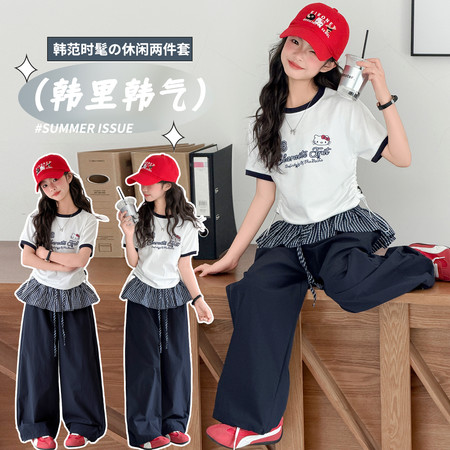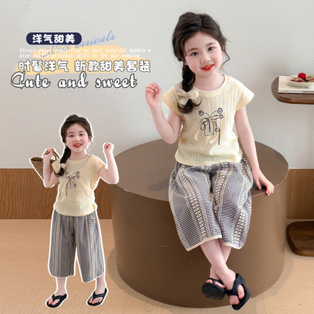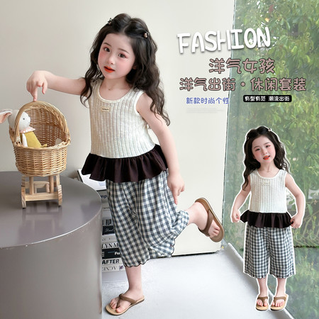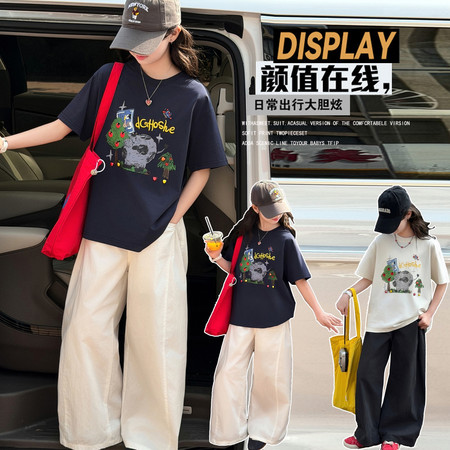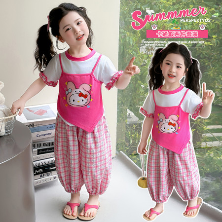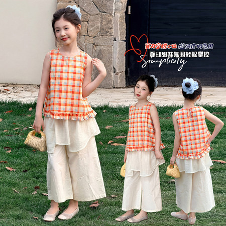 蕊蕊&R209款数码印花小马T恤工装格子裤套装