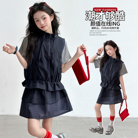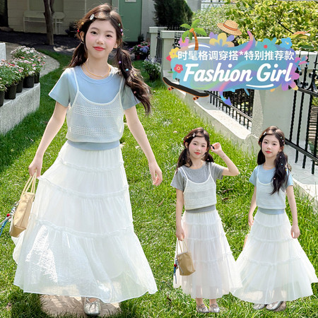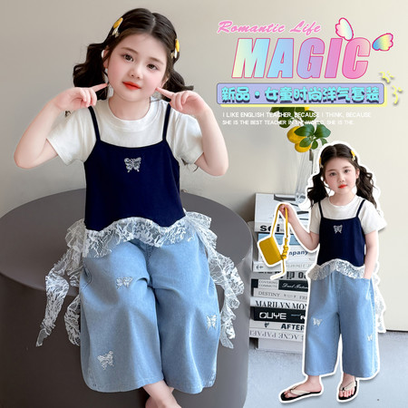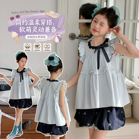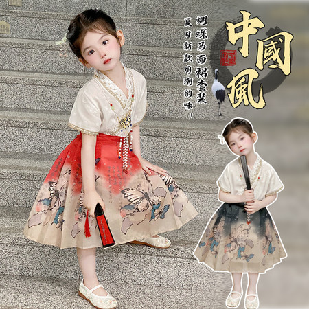 nn童装&25131---夏款半身蝴蝶马面裙套装