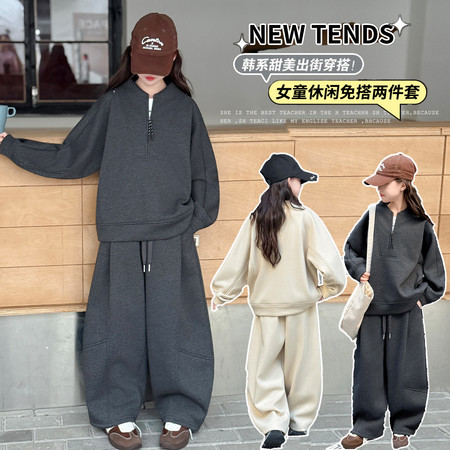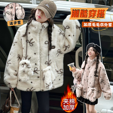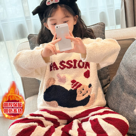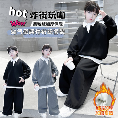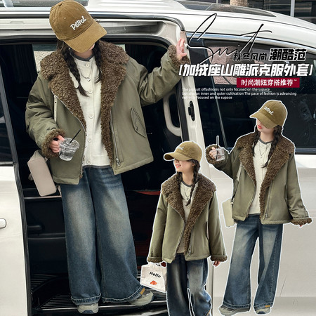 猫咪乐&M203三粒扣格子拼接加绒套装