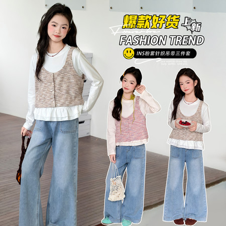 五小七【原五七潮童】&SJ8396猫猫毛衣马甲三件套