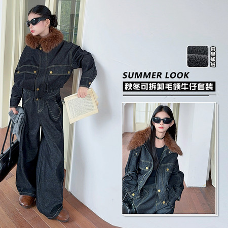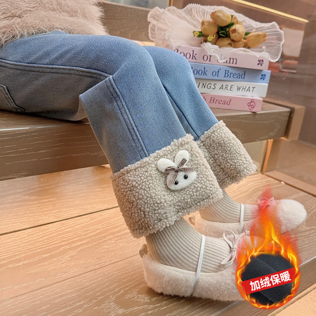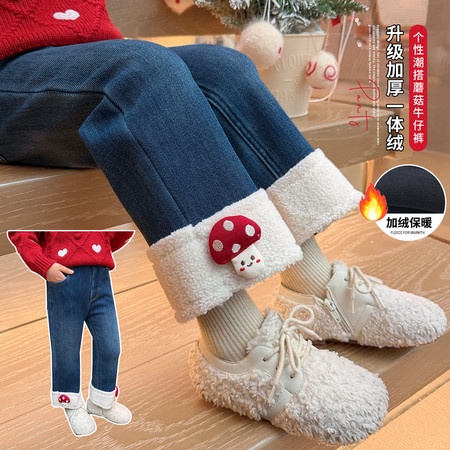 乐小小&KZ55136蘑菇脚口羊羔毛牛仔裤