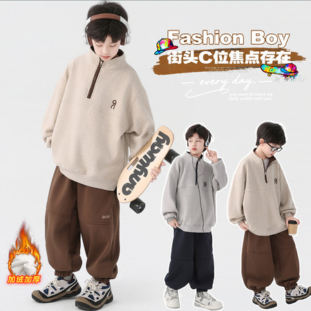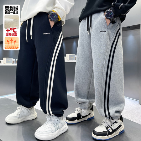 糖果小镇网供&TGXZ5980男童弯刀织带加绒运动裤