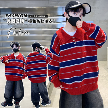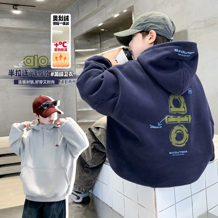 星星年华&DX04711男童条纹卫衣加绒格子裤套装