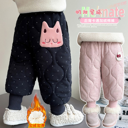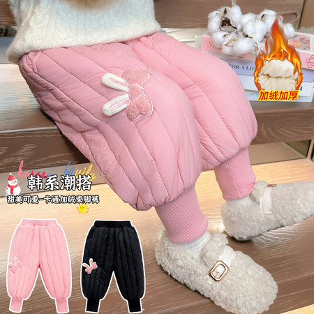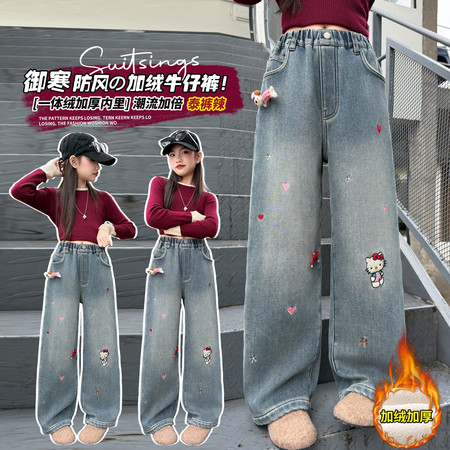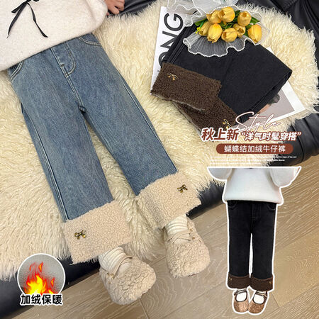 小豆町&D219蝴蝶结卡通刺绣加绒牛仔裤