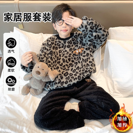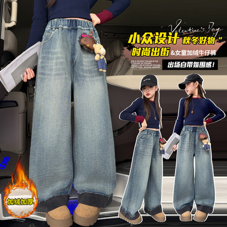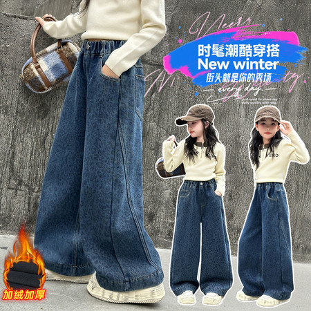 小豆町&B1-2506豹纹脚口加绒牛仔裤