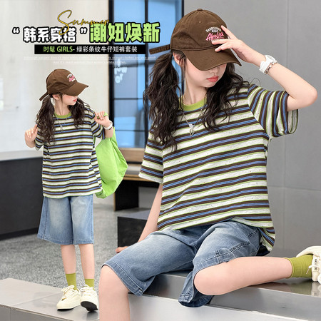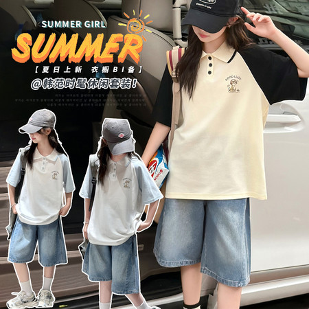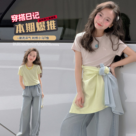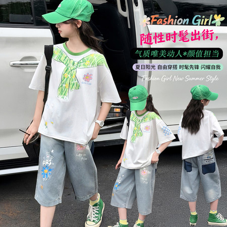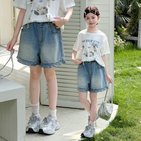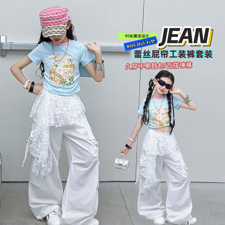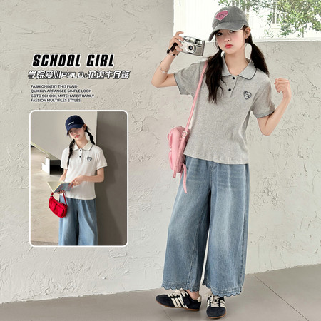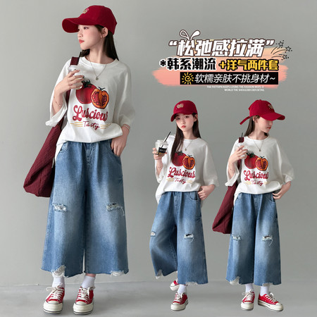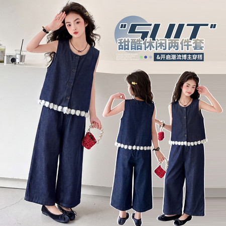韩菓儿(甜心班纳)&A26025款刺绣花边牛仔裤套装