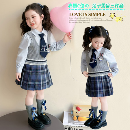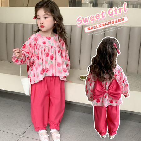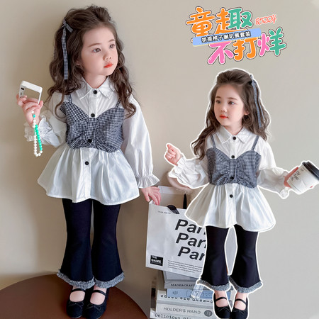 蕊蕊&R195款花边拉条蝴蝶结衬衣百褶裙套装