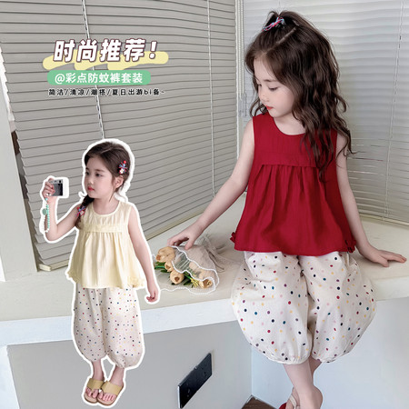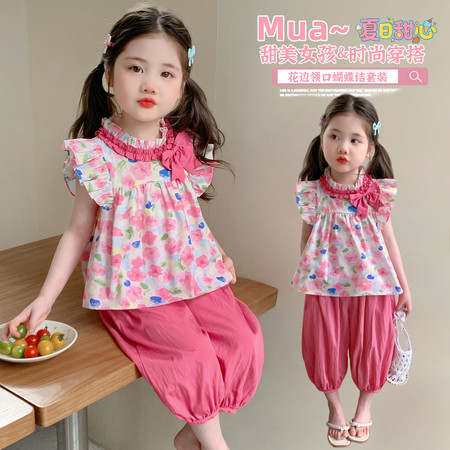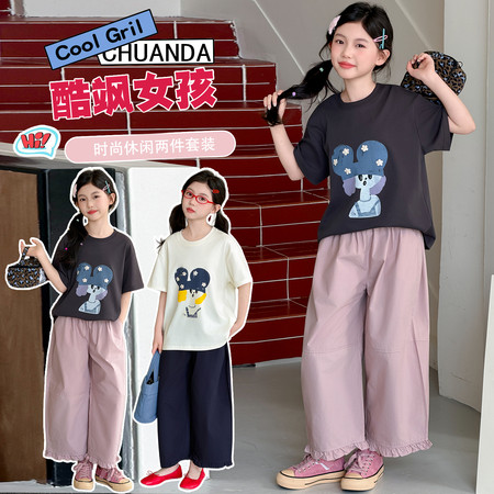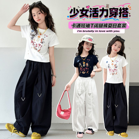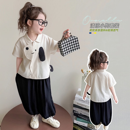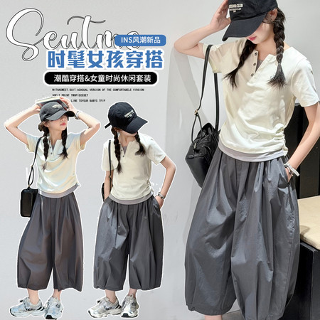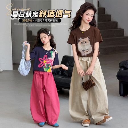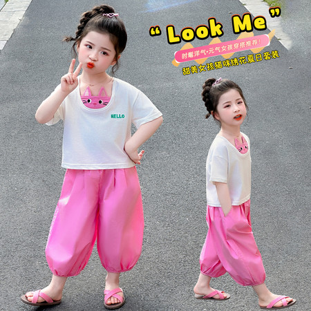 X2610彩扣猫咪灯笼裤套装