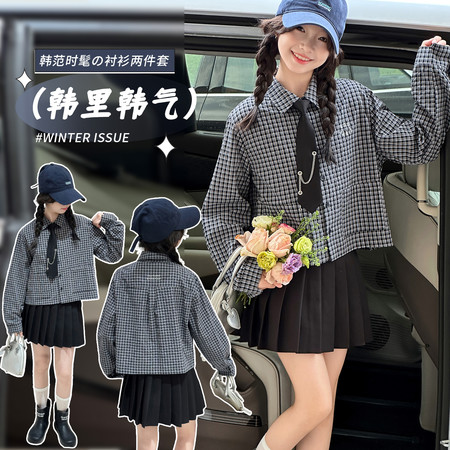 童衣童缘&26005耳机马甲格子衬衫三件套
