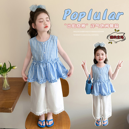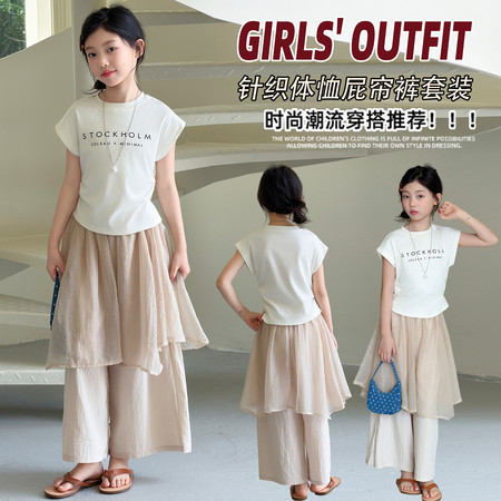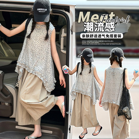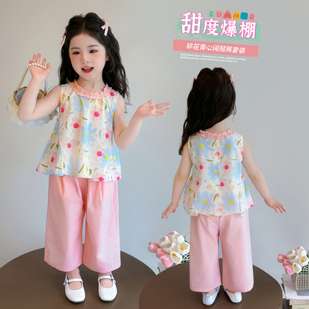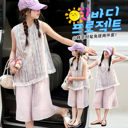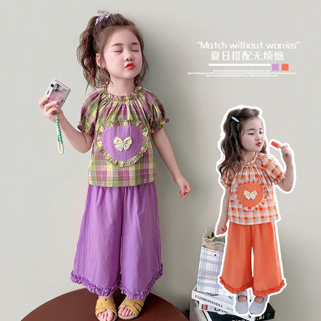 童多乐&2601款爱心贴布绣花天丝七分裤套装