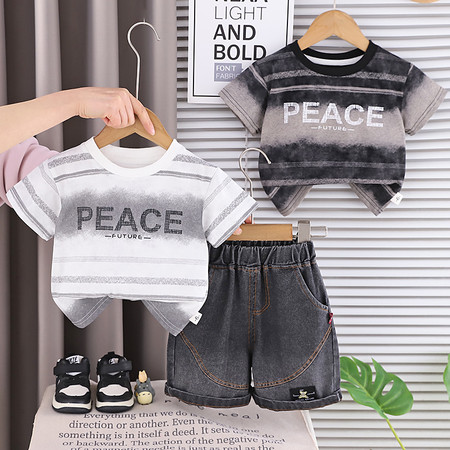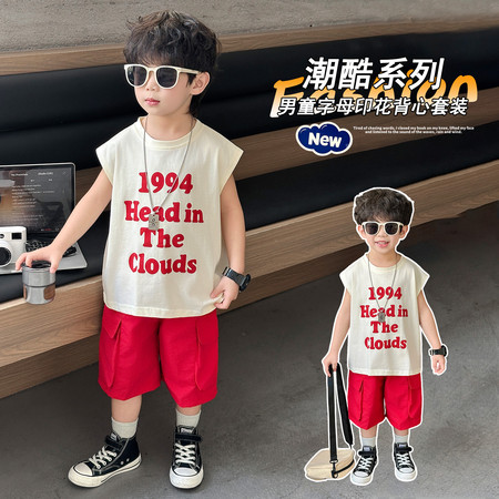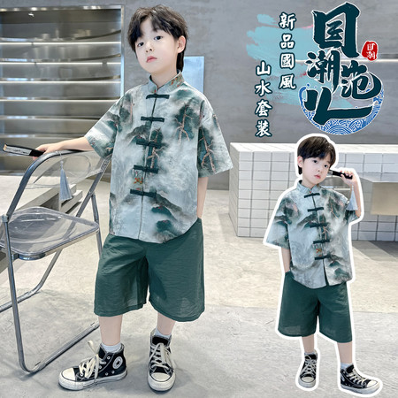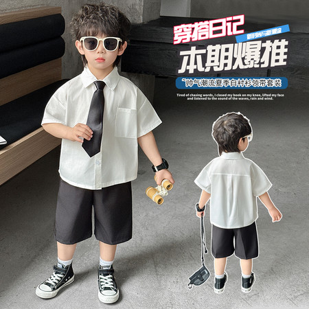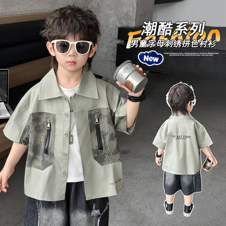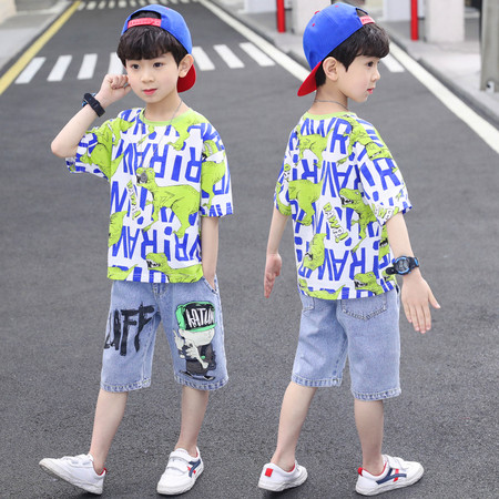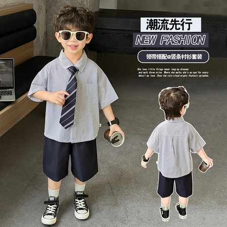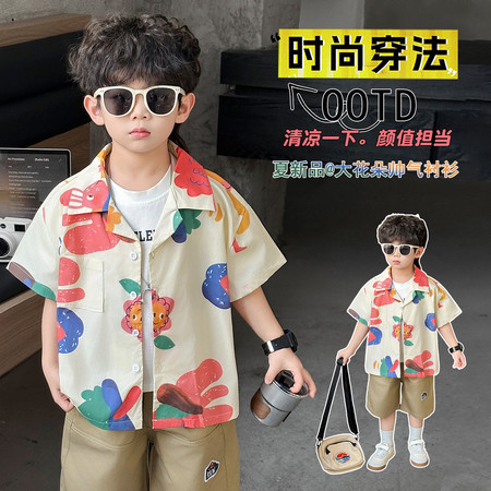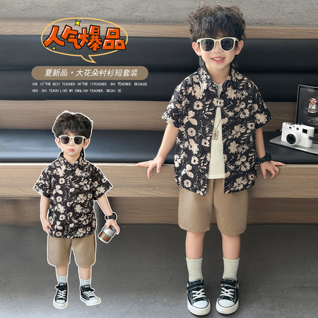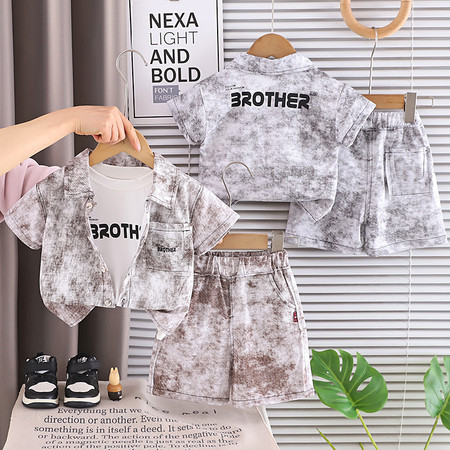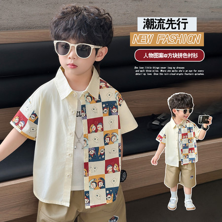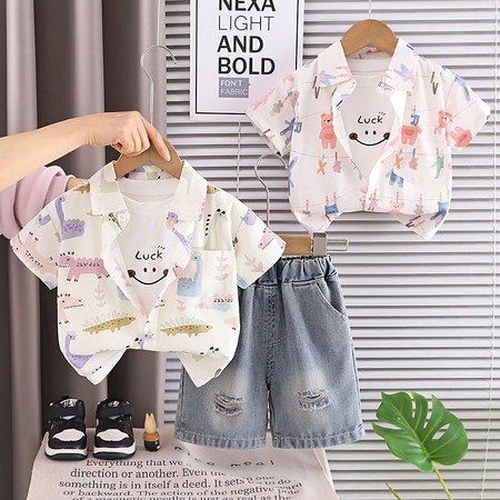 五小七&YC262208印花动物衬衫短袖三件套
