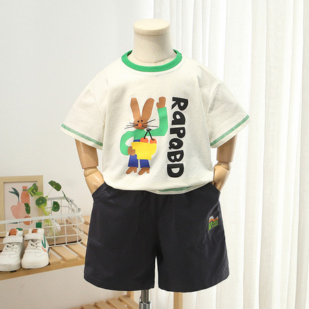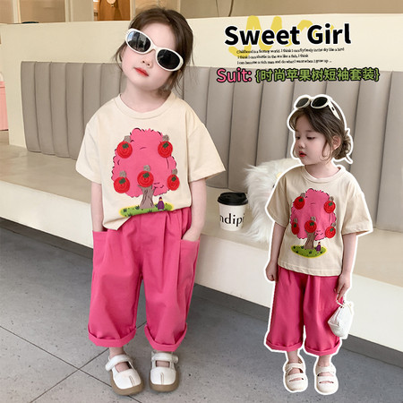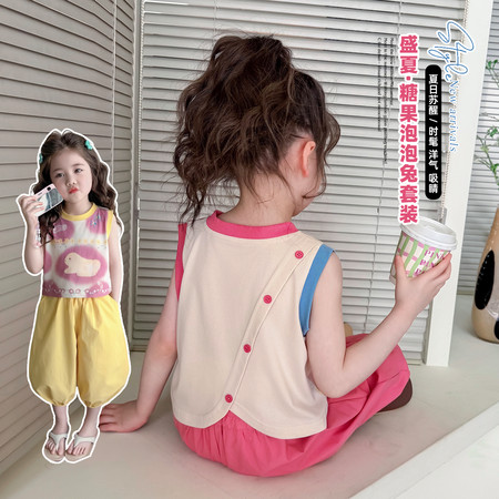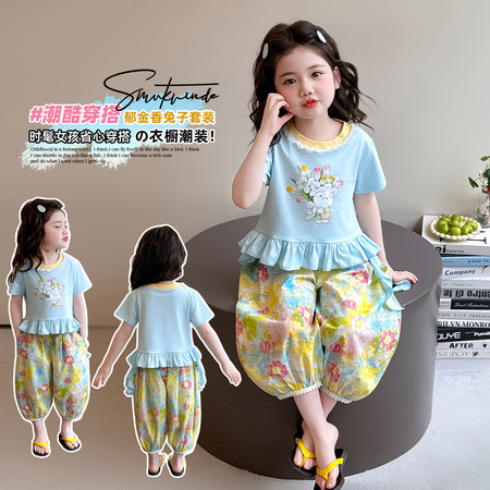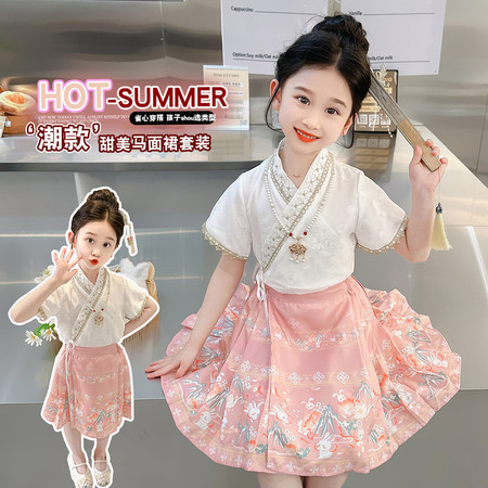 nn童装&25095---夏款粉色玉兔马面裙套装