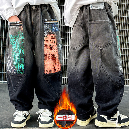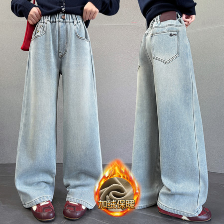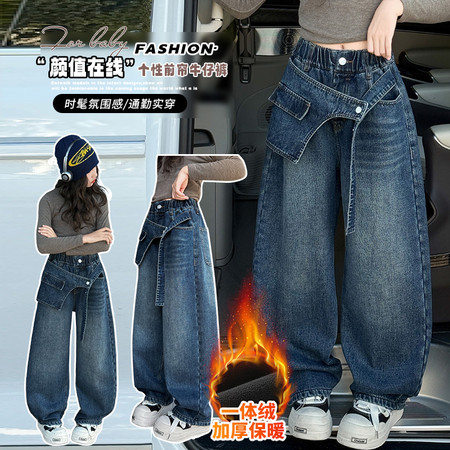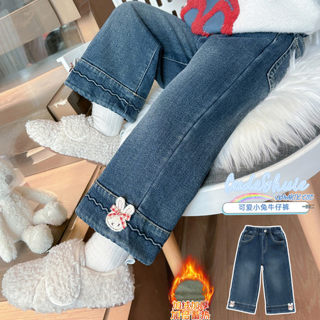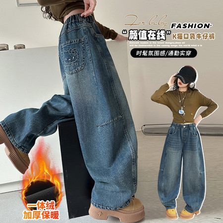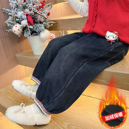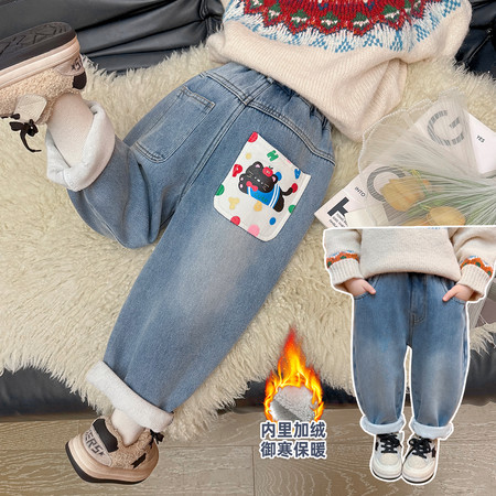 甜甜家&小猫挂件加绒牛仔裤-2718