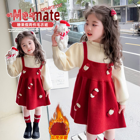 小豆町&XDD-083-6个蝴蝶结毛衣连衣裙