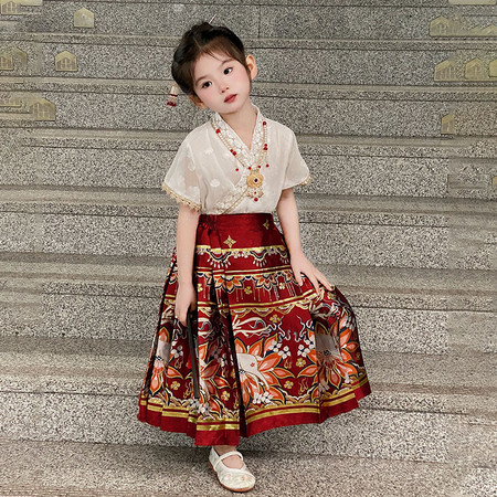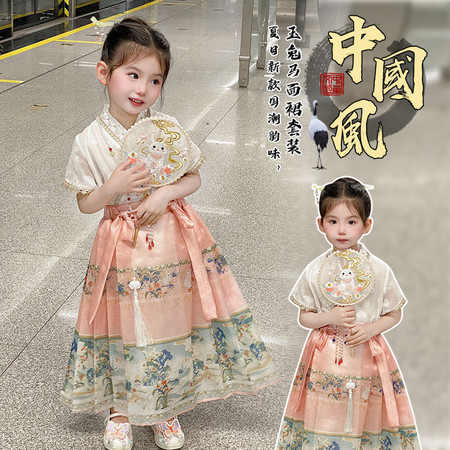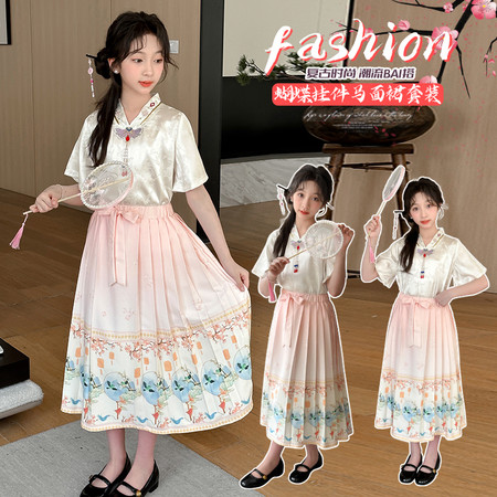 nn童装&25103---夏款织金福鹿马面裙套装