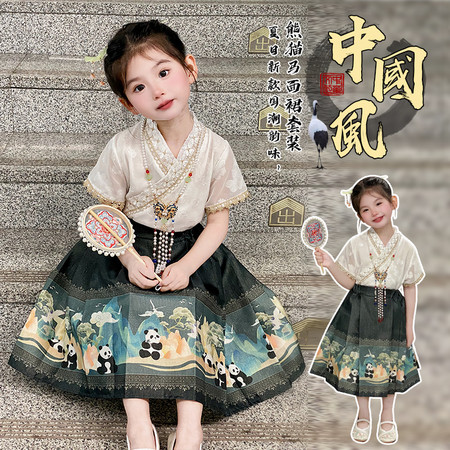 nn童装&25105---夏款熊猫马面裙套装