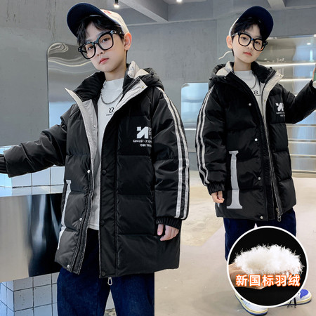 麦吉&2498拼色蝴蝶字母压花羽绒服-