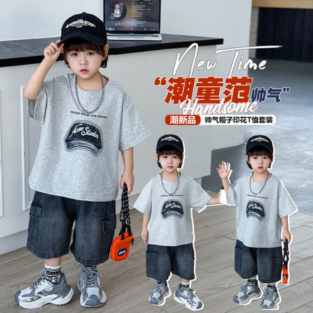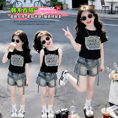 苹果甜甜&6507款韩版牛仔外套灰色短袖白裙三件套
