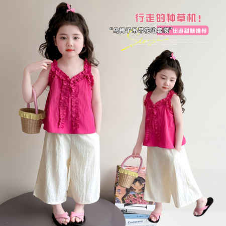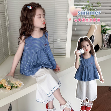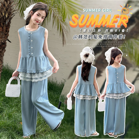 蓝月亮&2617款甜美无袖花边裙牛仔裤套装