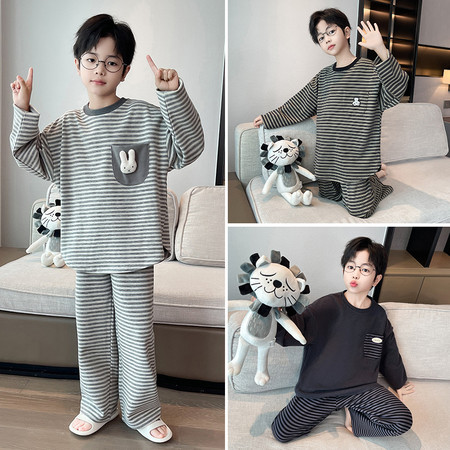 洪冠服饰&2581A开叉贴标条纹家居服睡衣套装