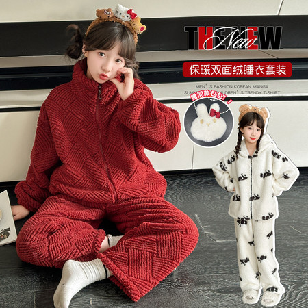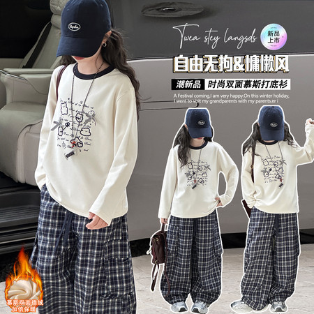 珊妮童装&7605女童冬加厚毛衣2591加绒格子裤