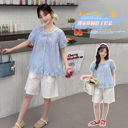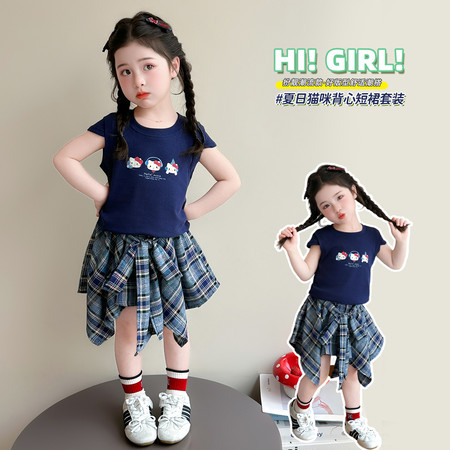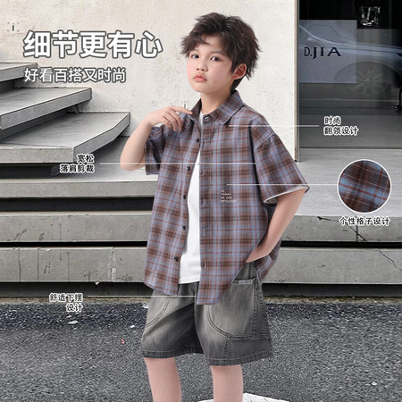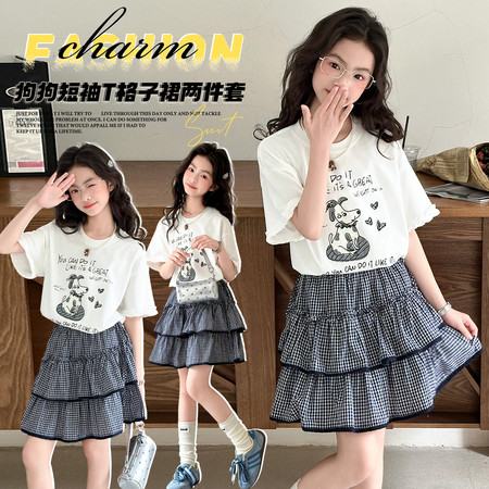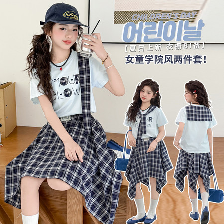 亿棵树童装&Q1621格子上衣牛仔裙套装