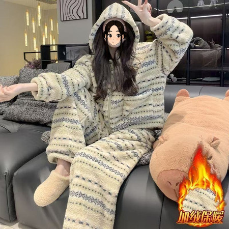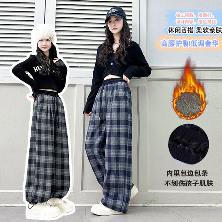 俏巴兔&806双面德绒印花格子裤套装