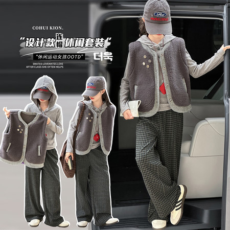 丸子家(贝壳笛)&女童夏装套装2025新款儿童洋气木耳边