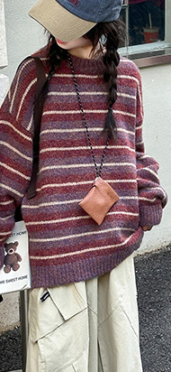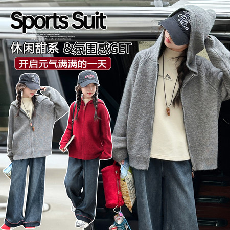 蓝月亮&2553款浮雕立领条纹披肩针织套装